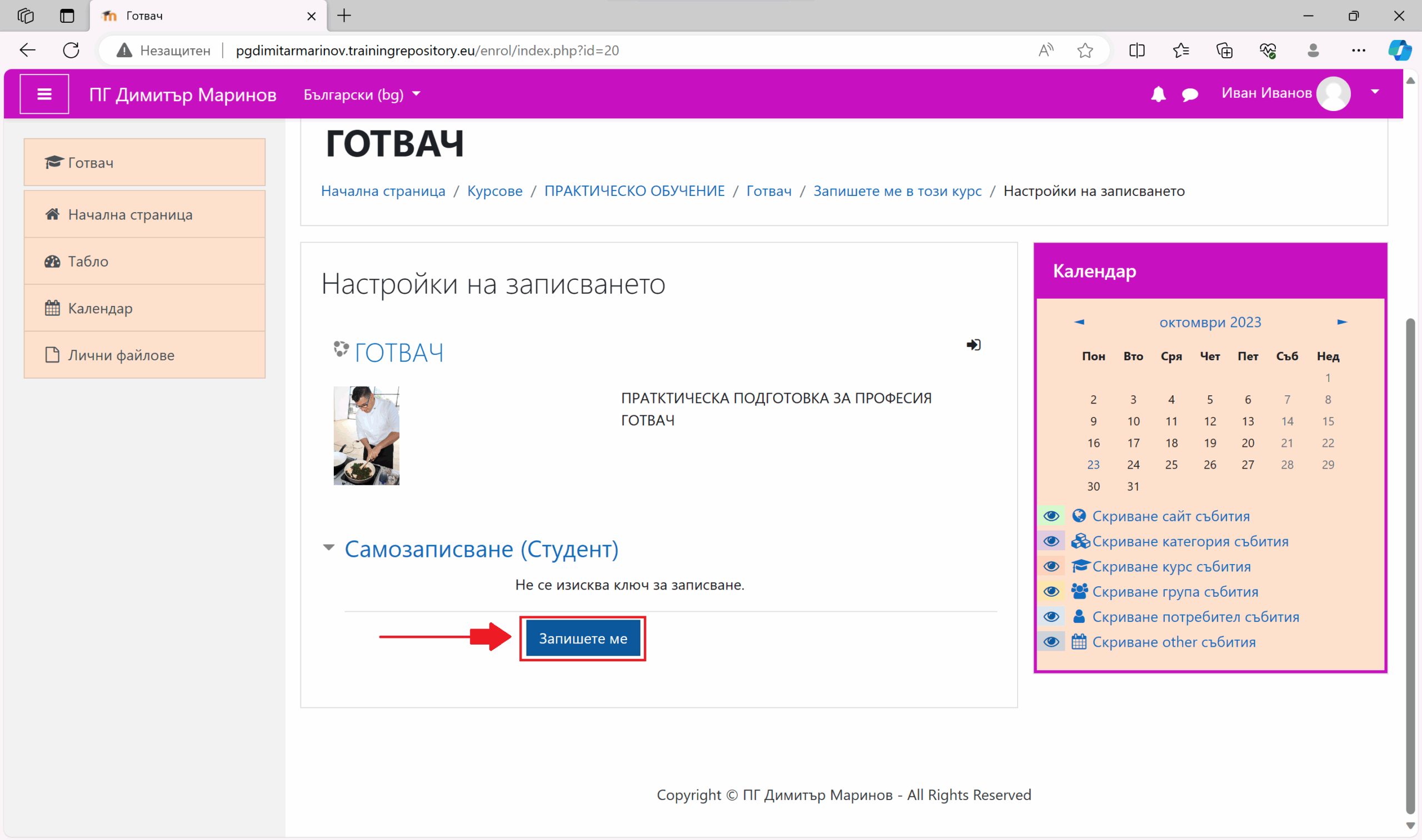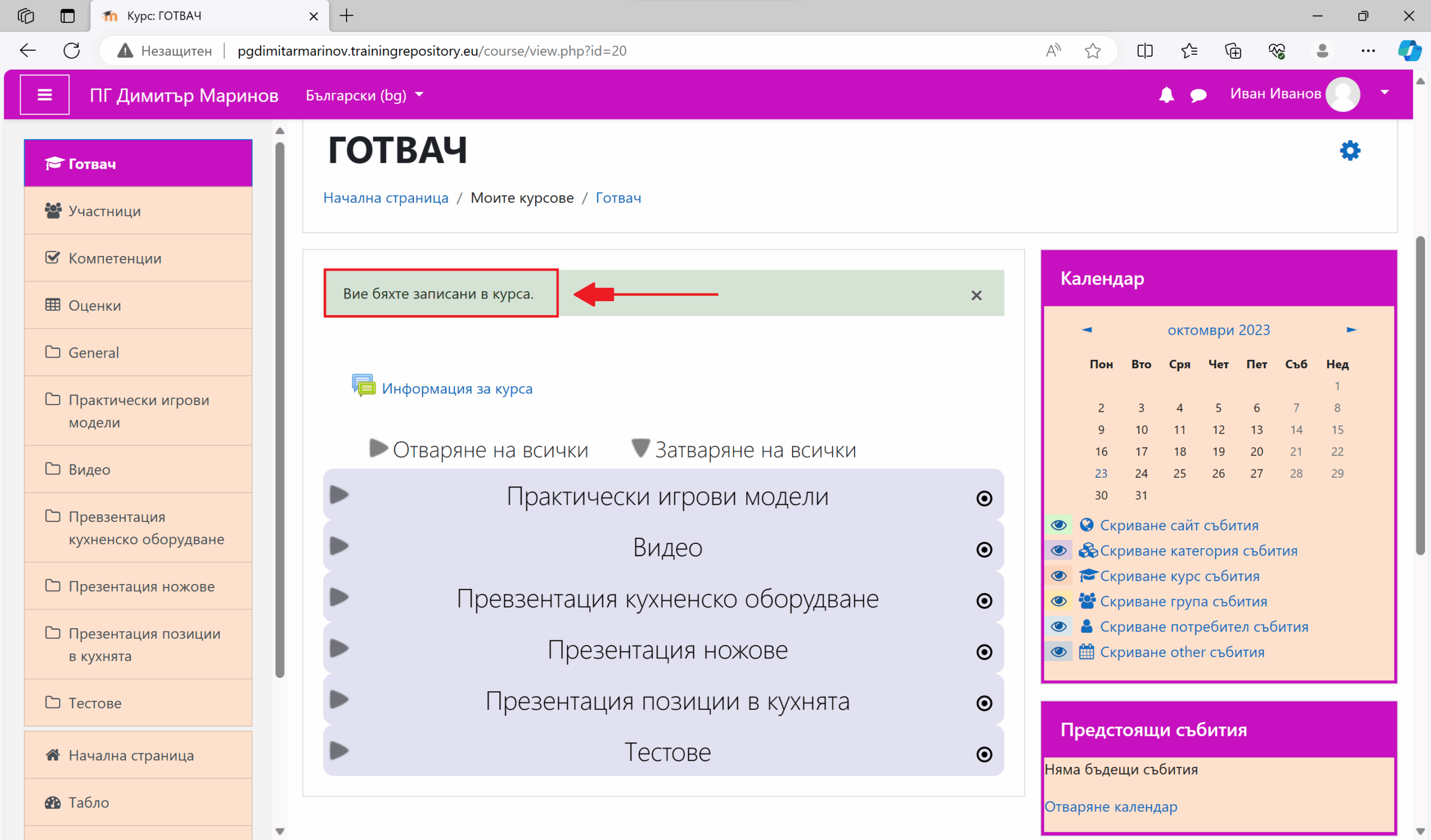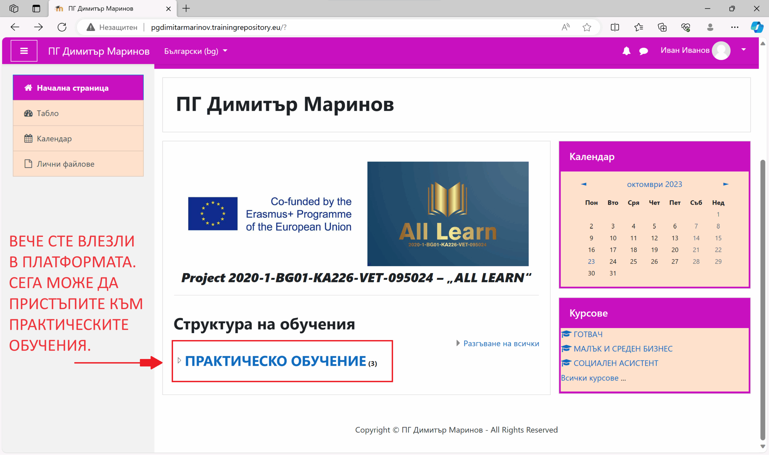Вече сте влезли в платформата, сега може да пристъпите към практическите обучения.